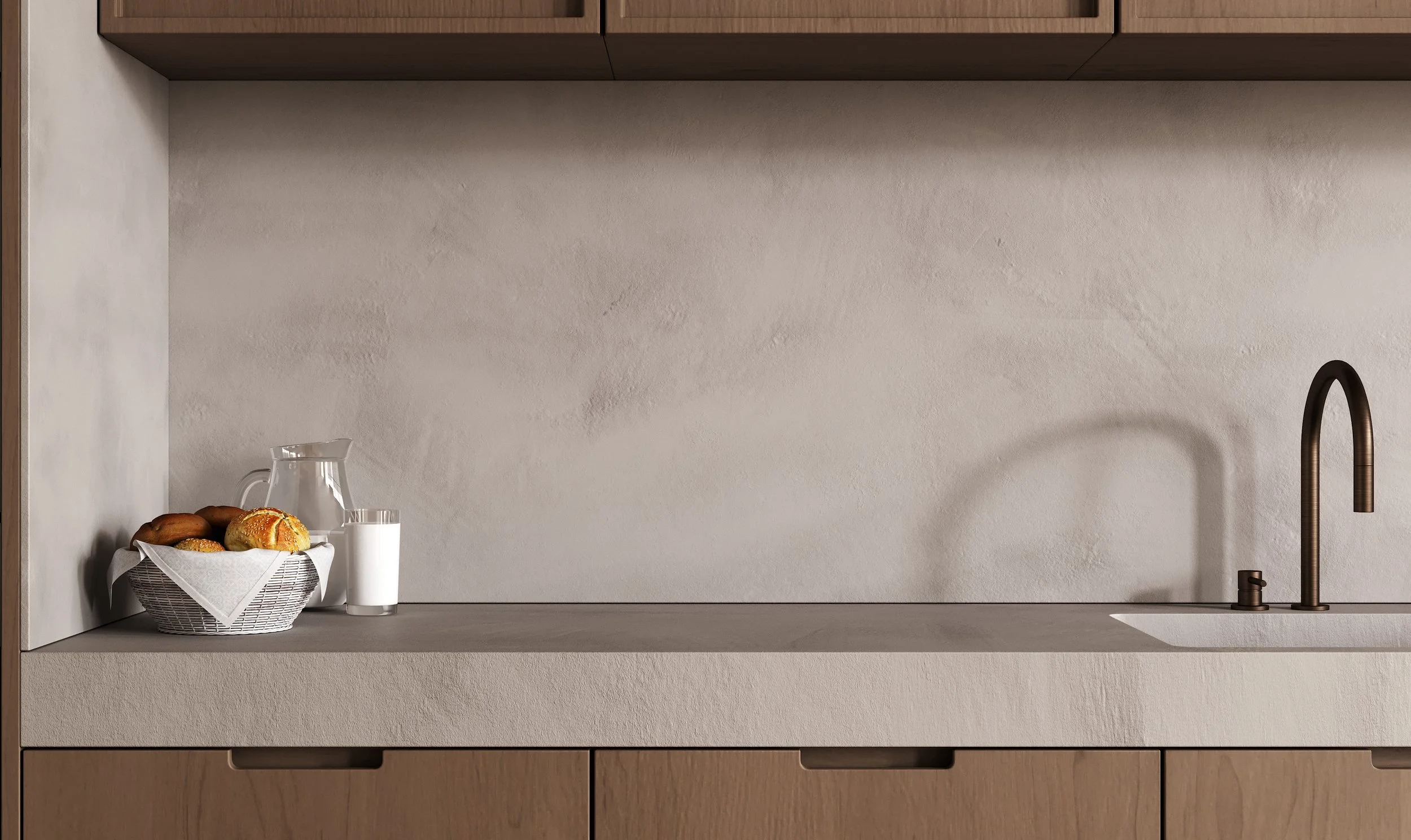 An unconventional choice, but one that instantly sets a kitchen apart, concrete delivers a bold, one-of-a-kind look that guests remember. When used as an exposed and dominant material across countertops, backsplashes, or feature walls, it brings an industrial, Brutalist-inspired edge. The result is a kitchen that feels simple yet striking, raw yet refined.
